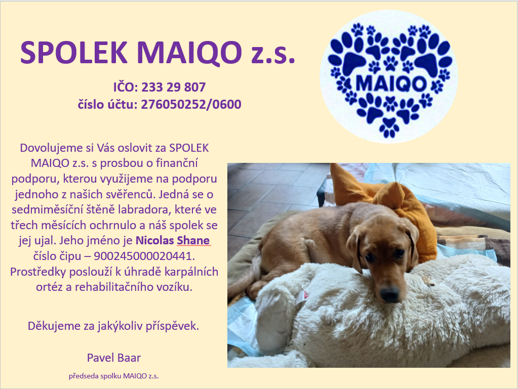 09. 10. 2025 Žádost o pomoc pro pejska, moc děkujeme.